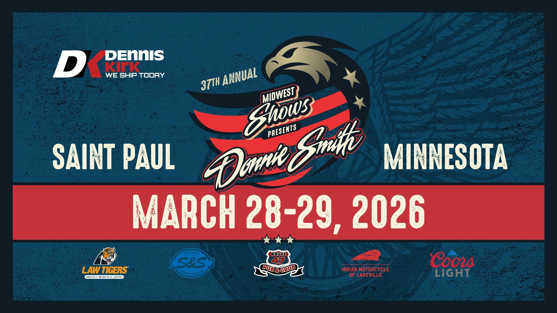 Vendors will be selling unique goods from across the Midwest during the show and some of the biggest names in the biker world will be on hand, including Donnie Smith and Neil Ryan, and sponsors Dennis Kirk, Law Tigers, S&S Cycle, Lakeville Indian, Route 47 Pub & Grub and Coors Light Beer.