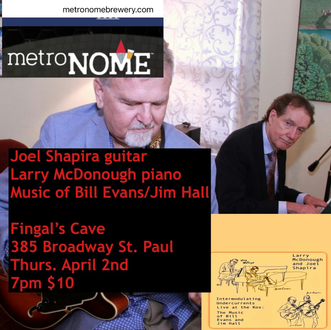 Larry McDonough saw Bill Evans perform in the 1970s, and Joel Shapira met Jim Hall when he lived in New York City in the early 1990s. Shapira, who now resides and performs in Paris, will be returning briefly to the Twin Cities for this show. The duo will perform music from their live recording celebrating the music of pianist Bill Evans and guitarist Jim Hall. "Intermodulating Undercurrents".